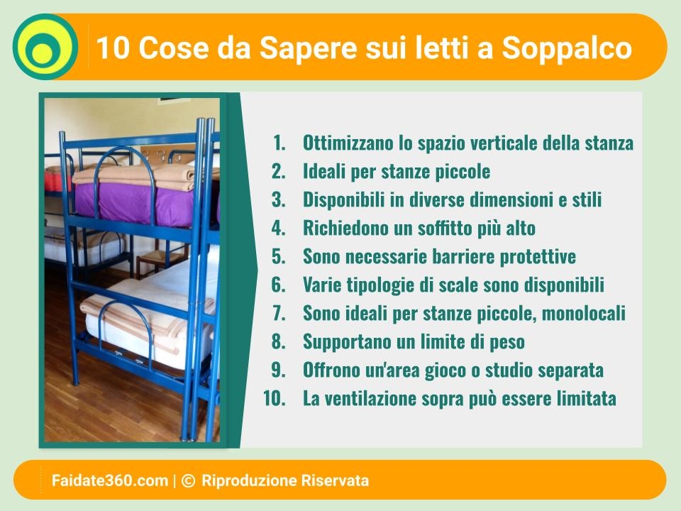 Quanto spazio serve per un letto a soppalco? Di solito, devi avere un soffitto alto almeno 2,6 metri per installare un letto a soppalco. La distanza dal letto a soppalco al soffitto dovrebbe essere almeno 90 cm per garantire la sicurezza.