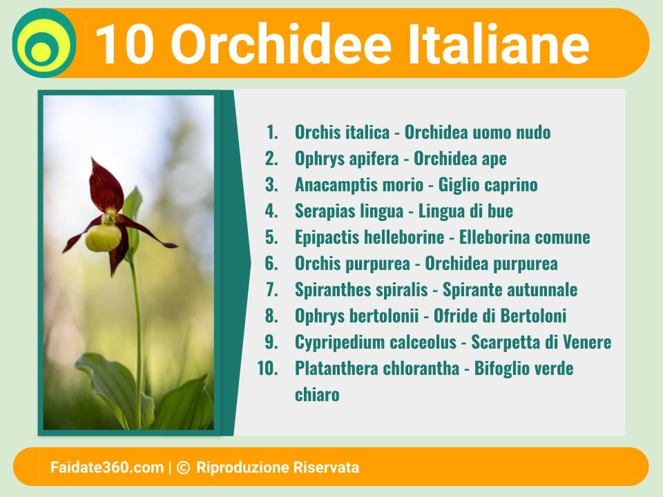 In Italia crescono circa 200 specie di orchidee, distribuite principalmente nelle zone di montagna e nelle aree protette. Molte di queste sono endemiche, ovvero crescono solamente in determinate regioni.