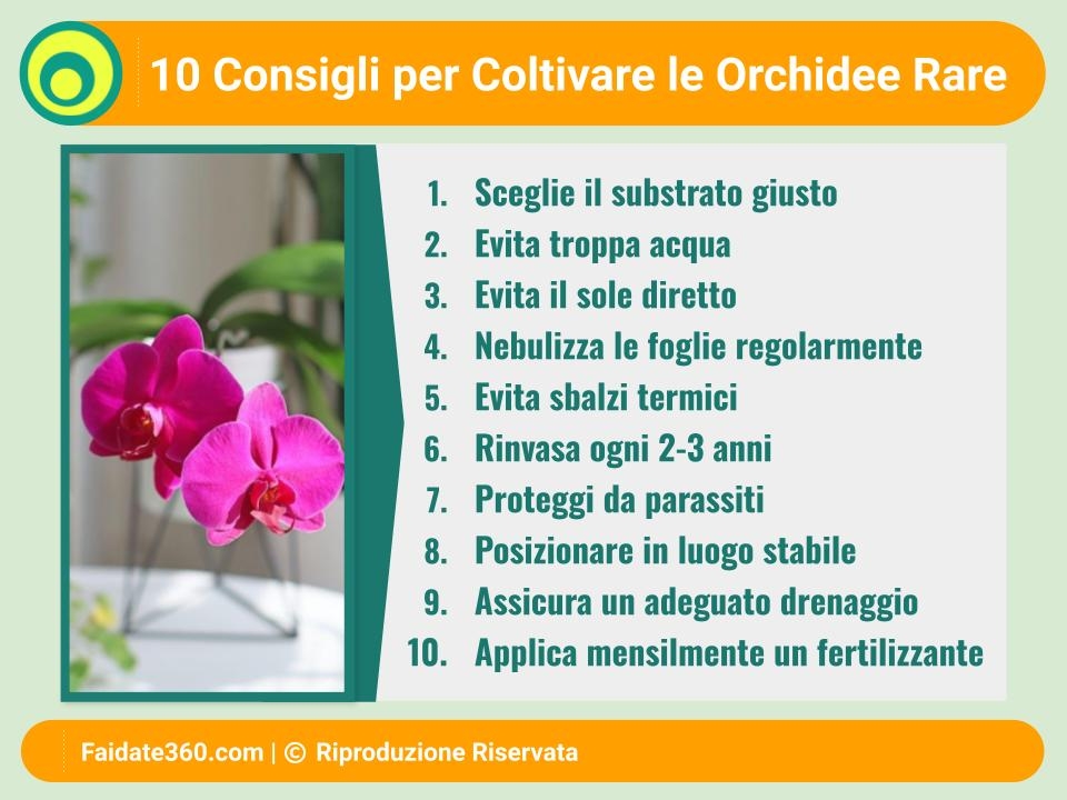 Come Posso Far Crescere un'Orchidea Rara? Ogni specie di orchidea rara ha le sue esigenze specifiche di luce, temperatura, umidità e substrato. Informatevi su queste esigenze per garantire la loro crescita e fioritura.