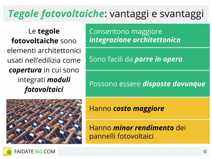 Cosa sono le tegole fotovoltaiche? Esaminiamo le caratteristiche delle varie tipologie ed i vantaggi e gli svantaggi rispetto ad un tradizionale impianto fotovoltaico.