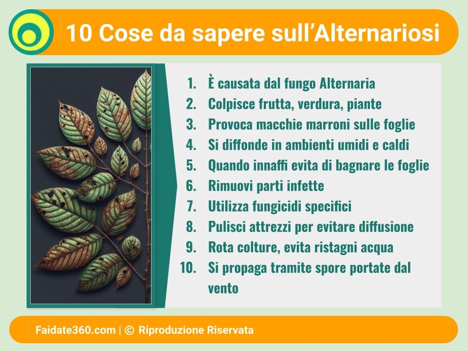 Cosa causa l'alternariosi? L'alternariosi è causata da un fungo chiamato Alternaria. Questo fungo prospera in ambienti umidi e caldi, e infetta una vasta gamma di piante.
