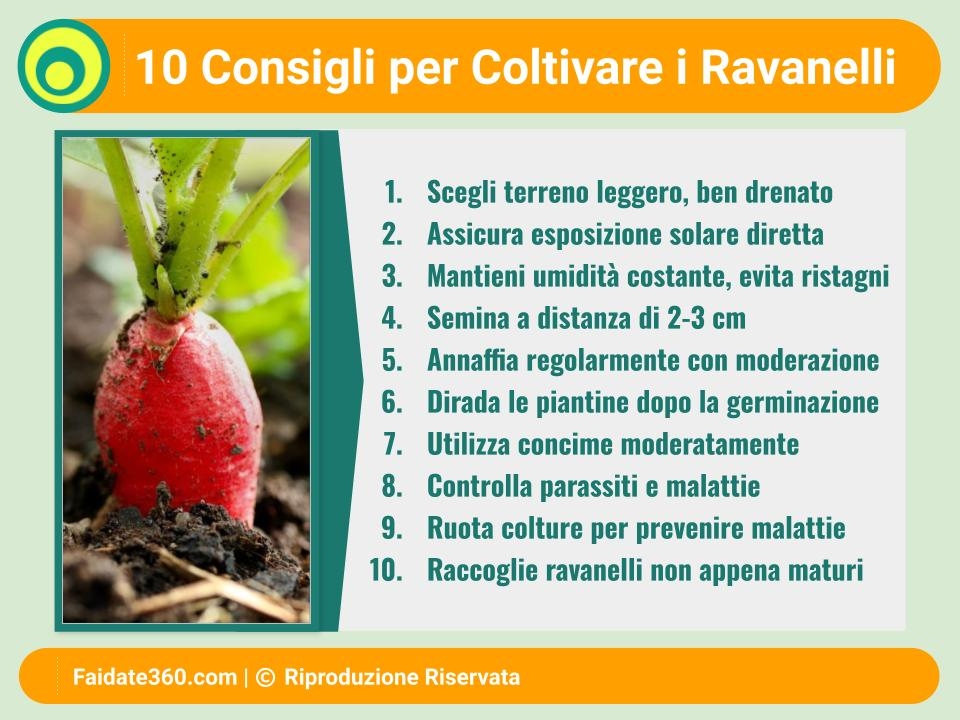 Rotazione delle colture: Questa pratica aiuta a prevenire i problemi legati ai parassiti e alle malattie. Evita di coltivare ravanelli nello stesso posto per due stagioni consecutive.
