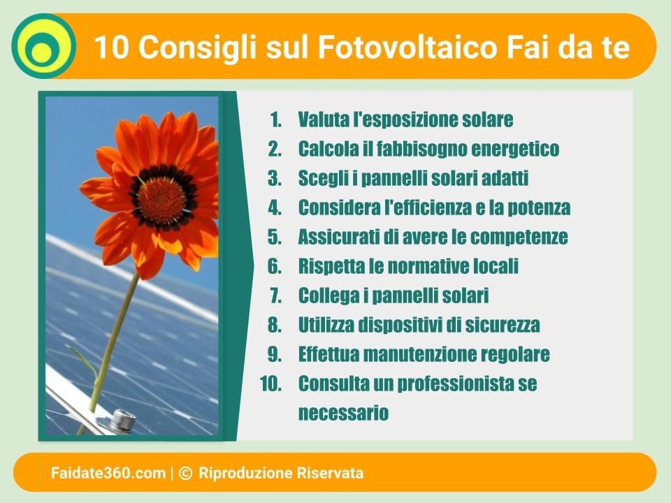 Per determinare la potenza necessaria del tuo impianto fotovoltaico fai da te, è importante considerare i seguenti fattori:
