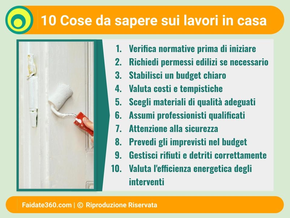 Ogni tipo di lavoro ha le sue specifiche e richiede un diverso livello di esperienza. Ricordati sempre di fare una pianificazione accurata, considerare le tue competenze e il tuo budget, e non esitare a cercare l'aiuto di professionisti quando necessario