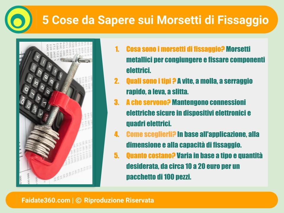 Quando si parla di morsetti di fissaggio, una delle domande più frequenti riguarda il costo di questi strumenti indispensabili. Ecco allora un'analisi dei prezzi medi per ciascuna tipologia di morsetto.