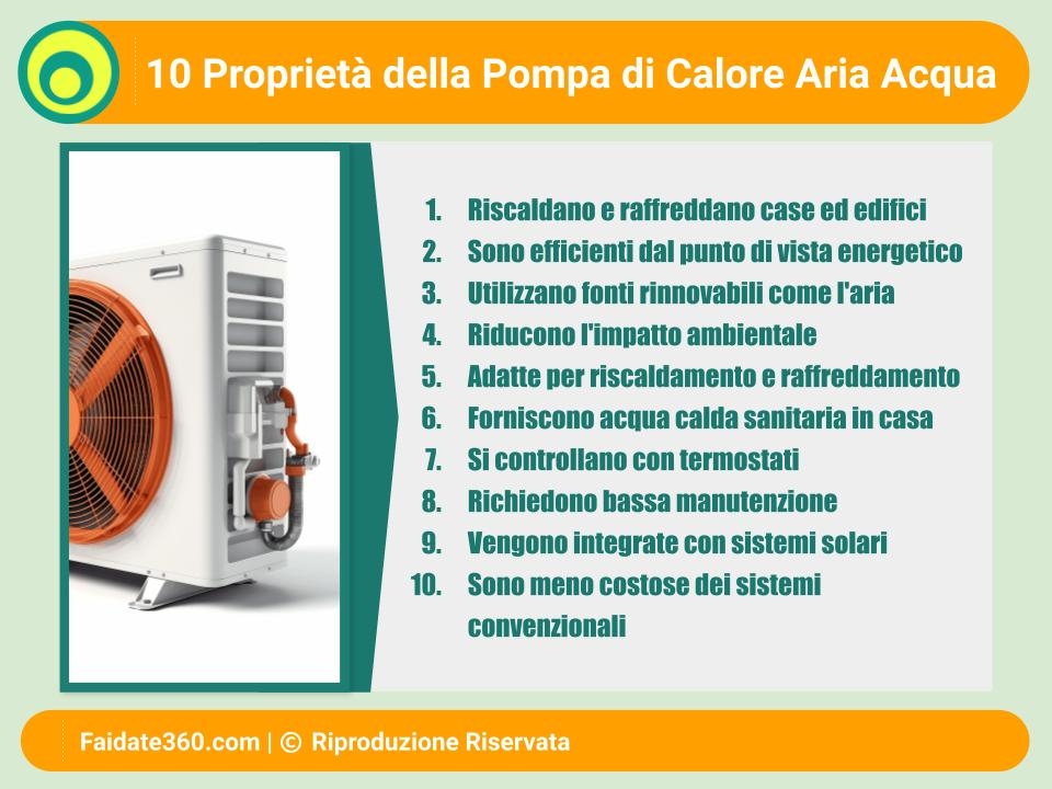 Risparmio energetico L'uso di una pompa di calore aria-acqua porta a un notevole risparmio energetico. Essendo molto efficienti, queste pompe sostituiscono o integrano i sistemi di riscaldamento tradizionali, riducendo così il consumo di energia. Il risparmio preciso varia a seconda delle condizioni climatiche locali, delle dimensioni dell'abitazione e dell'isolamento termico.
