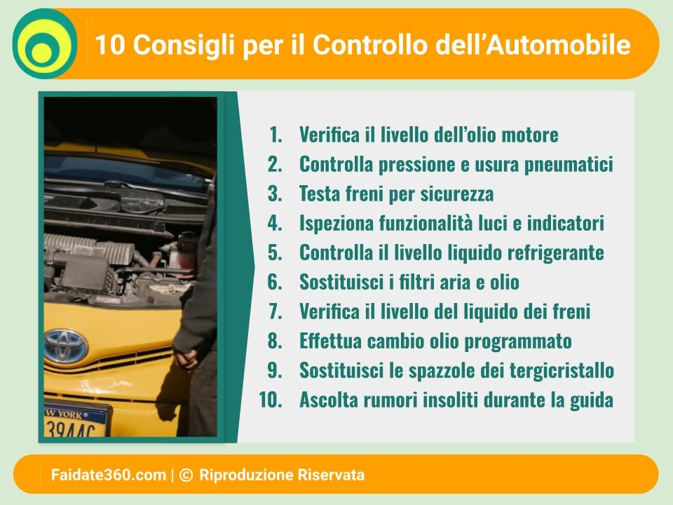 Il controllo regolare della tua auto è la chiave per mantenerla in ottime condizioni. Prenditi il tempo per familiarizzare con la tua auto e non esitare a consultare un professionista se noti qualcosa di insolito.